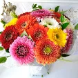 поможет солнечное сочетание пестрых гербер. Нежно розовый цвет намекнет о симпатии,  желтый о дружеском интересе, оранжево-красный станет комплиментом, а насыщенно-розовый