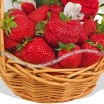Стандартный (на фото): клубника - 1 кг, альстромерия белая - 2 шт, роза красная - 1 шт, оазис - 0,4, корзинка.