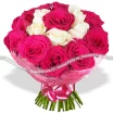 ДЕЛЮКС: роза розовая - 14 шт., роза белая - 11 шт., сизаль розовый, бант розовый. Примерный размер: 45Х45 см.